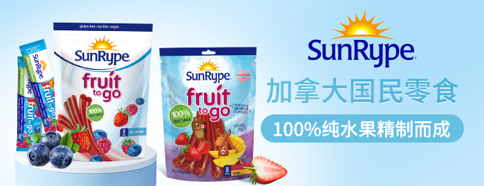 SunRype位于加拿大英属哥伦比亚省欧垦娜根湖畔, 1964年,该省水果种植协会成立了英属哥伦比亚 省水果加工有限公司。从此,公司以当地农户果 园出产的优质苹果为原料,生产100%纯天然果汁 及果肉制品。SunRype”品牌寓意“阳光的味道”,凭借75+ 年的卓越品质已成为全加乃至北美市场的知名品 牌,其“蓝标”苹果汁更是家喻户晓。品牌屡获 殊荣,包括北美家长协会PTPA推荐品牌、加拿大 食品检疫署CFIA认证产品、加拿大BC省最受欢迎 品牌之一等荣誉。自此以后,我们经历了漫长的岁月生产出了许多不 同的水果果汁、水果制造的零食。我们独一无二的 Okanagan产区充足的阳光使之成为水果生长的最佳 因素。